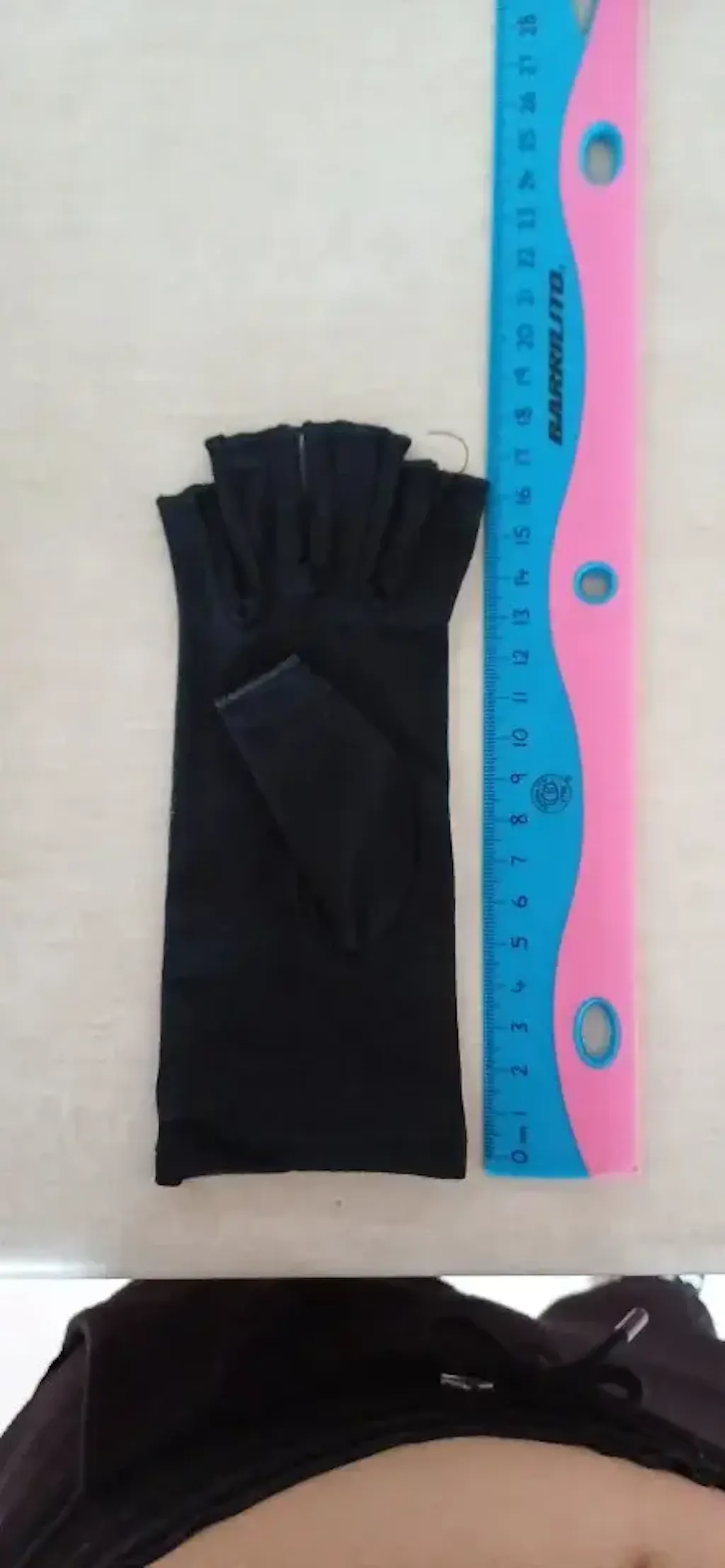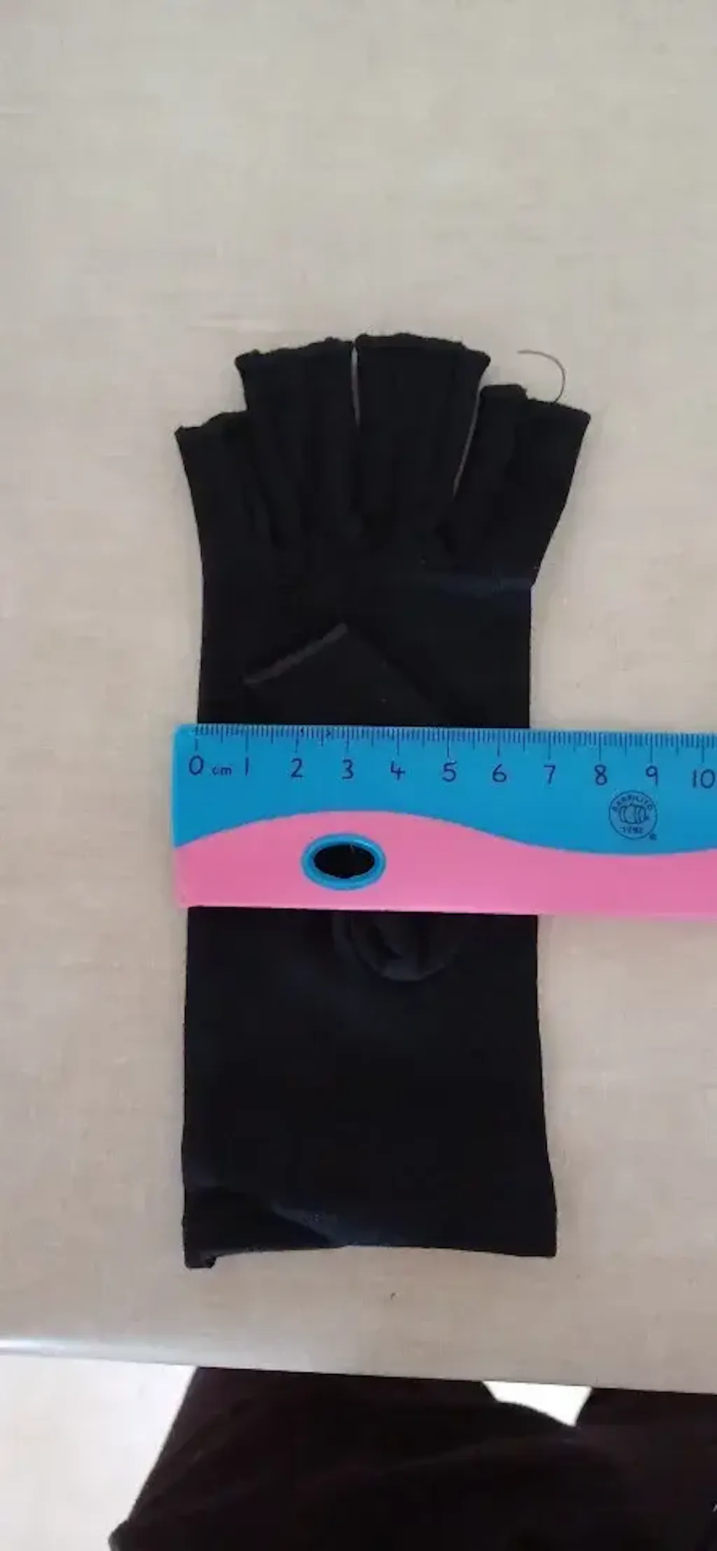 Fabriqué en tissu extensible mais solide, lisse et confortable à porter. La taille S semble petite pour ma main avec une largeur de paume de 8,5 cm. Comme il est extensible, je peux en fait serrer mes mains et l'étanchéité est parfaite.